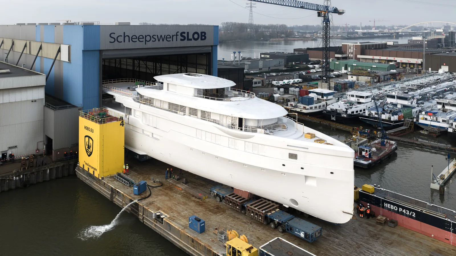 The 72-metre Feadship superyacht Project 719 has been seen for the first time departing the Scheepswerf Slob sheds in Papendrecht, the Netherlands.