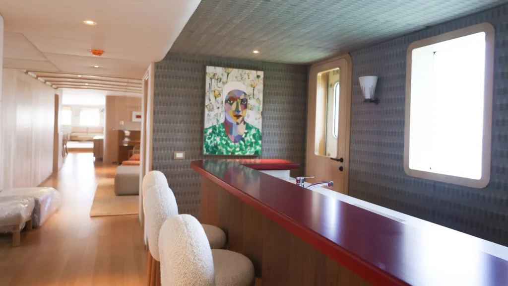 This same design ethos was applied to her 945GT interiors, which have been refashioned in natural textures, a soft colour palette and contemporary furniture. The Turkish yard also endeavoured to preserve some “original components” and harmonise them with modern features.