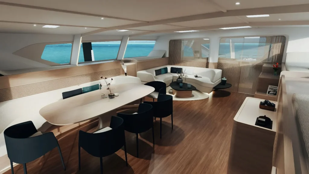 VPLP Design is the studio behind Anahita’s sharp, sculptural exterior lines and naval architecture, while French designer Christophe Chedal Anglay is responsible for the trimaran’s “home at sea” interiors. French shipyard CDK Technologies will complete the construction to BV Class.