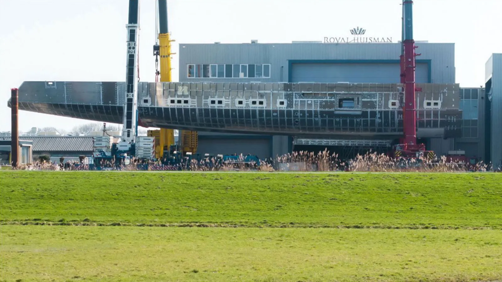 Royal Huisman’s new CEO, Peter Naeyé, commented on the latest milestone. He said: “The hull turning is always a proud moment because you see the result of thousands of hours of craftsmanship in its full presence.