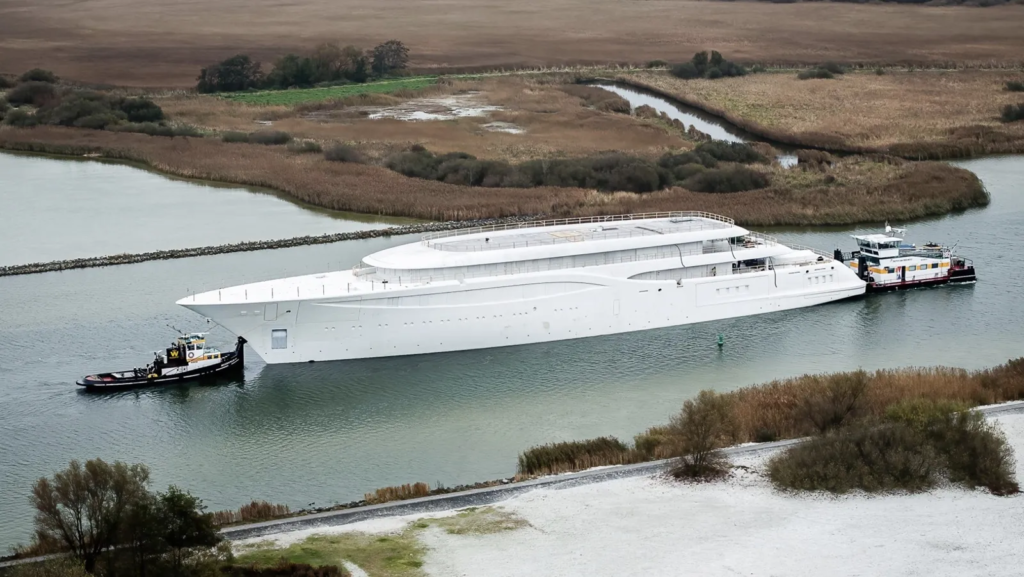 The mammoth new build was last seen entering outfitting at the same sheds in November 2024 and has only been sighted a handful of times since construction began in early 2023.