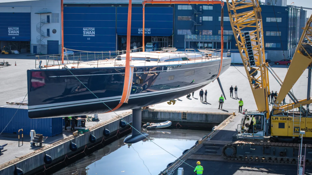 Finnish yard Nautor Swan has announced the launch of the second unit from its Swan 128 maxi yacht model, now officially christened Raijin. The 39-metre sailing yacht hit the water at the yard’s facilities in Pietarsaari, Finland, following the first from the series BeCool, which was launched last year.