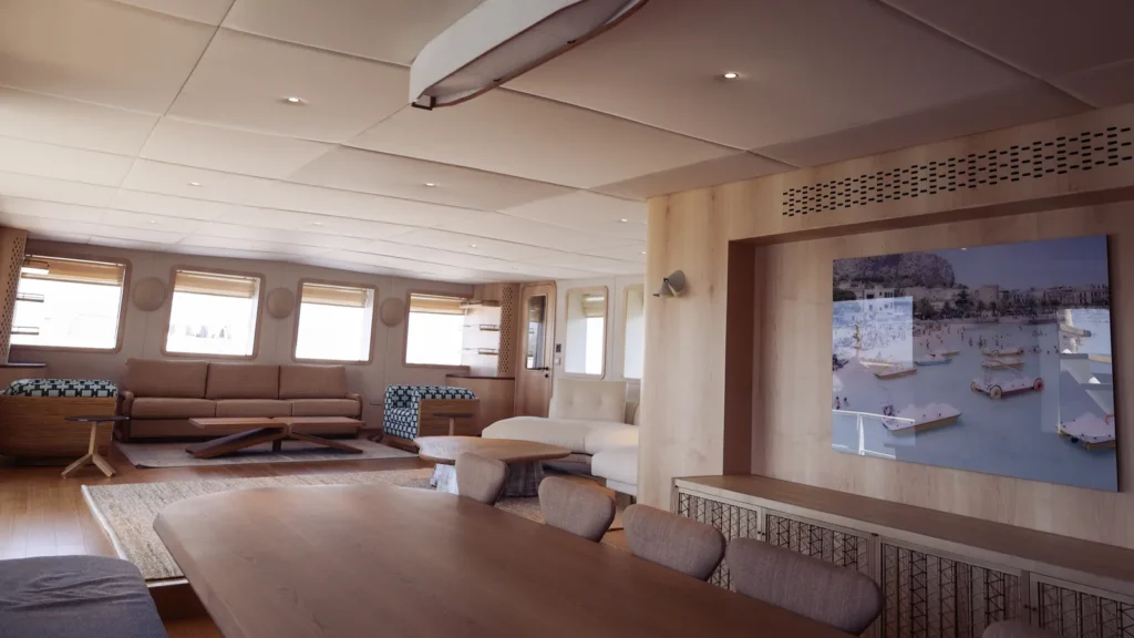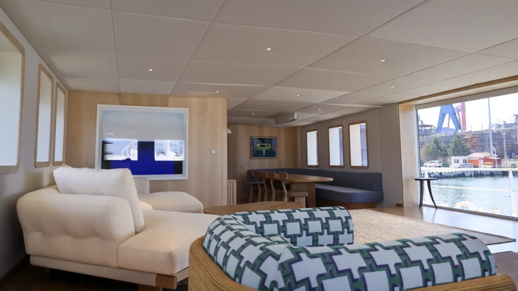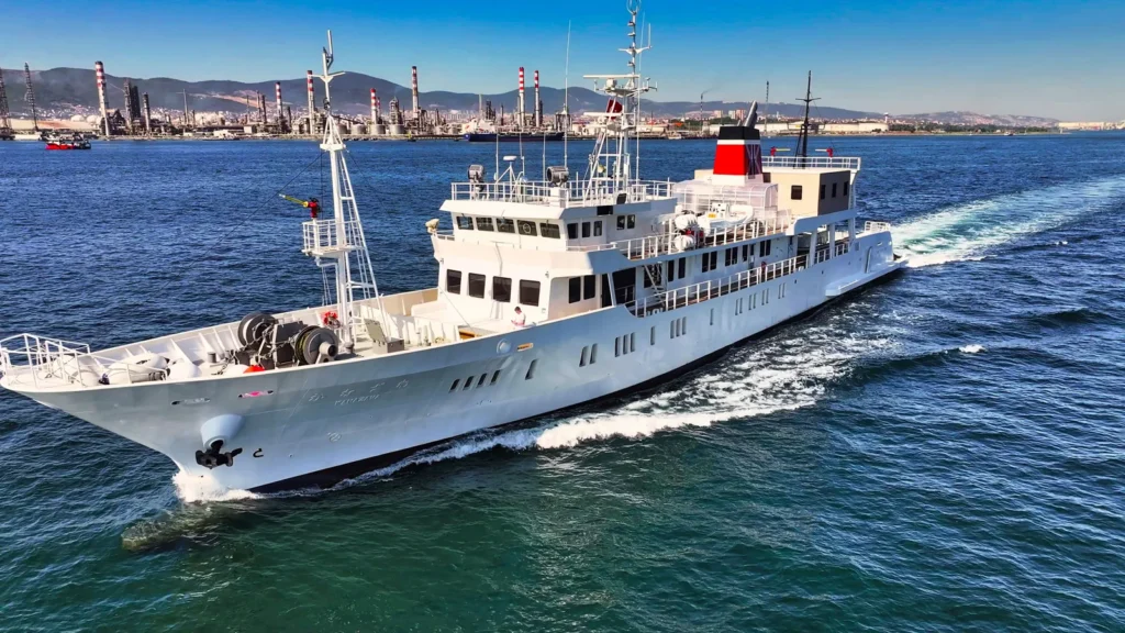 同样的设计哲学被贯穿于其945总吨位的内部空间。室内设计采用了天然材质、柔和的色调和当代风格的家具,营造出一种宁静而奢华的氛围。值得一提的是,土耳其船厂在改造过程中,还刻意保留了一些“原始构件”,并将它们与现代设施巧妙融合,实现了历史与现代的和谐共生。