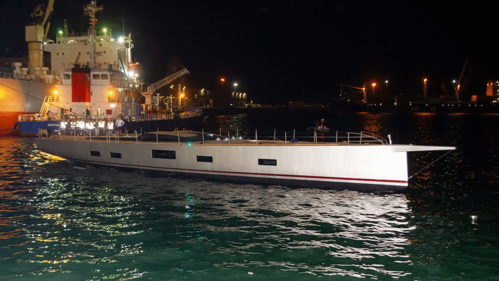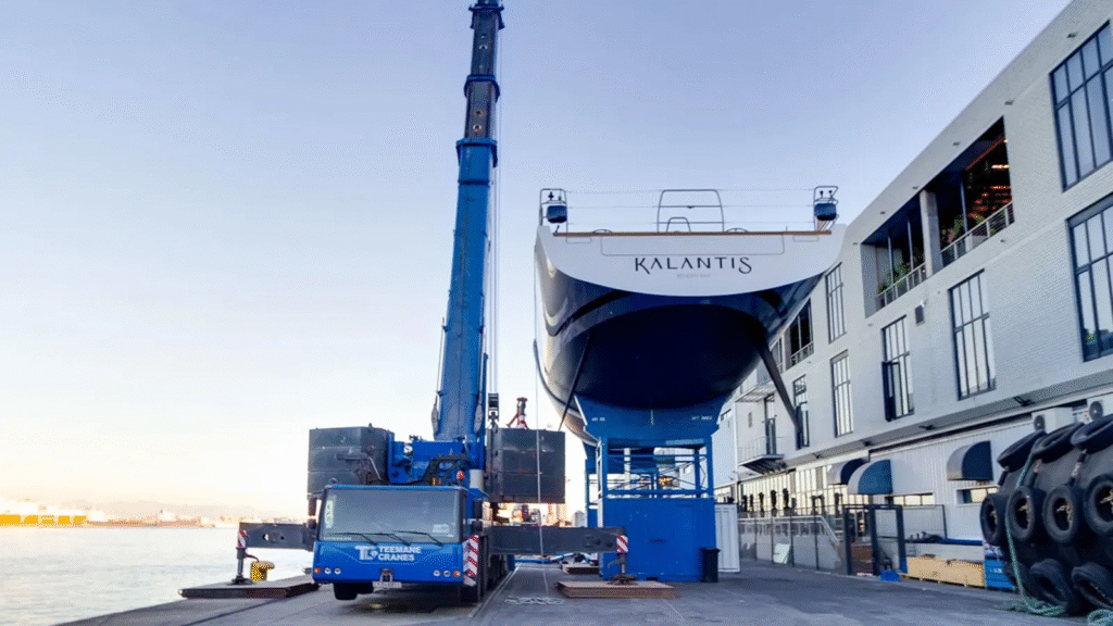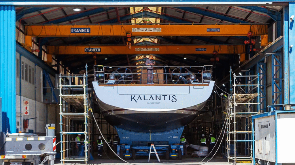 据2026上海国际游艇展官网小编了解到:南非船厂Southern Wind近日宣布,其35.5米SW108系列帆船游艇的第三艘成功下水,并被正式命名为“Kalantis”号。这艘帆船游艇在船厂位于开普敦的设施内,于一场充满诗意的月光洗礼仪式中,缓缓滑入水中。