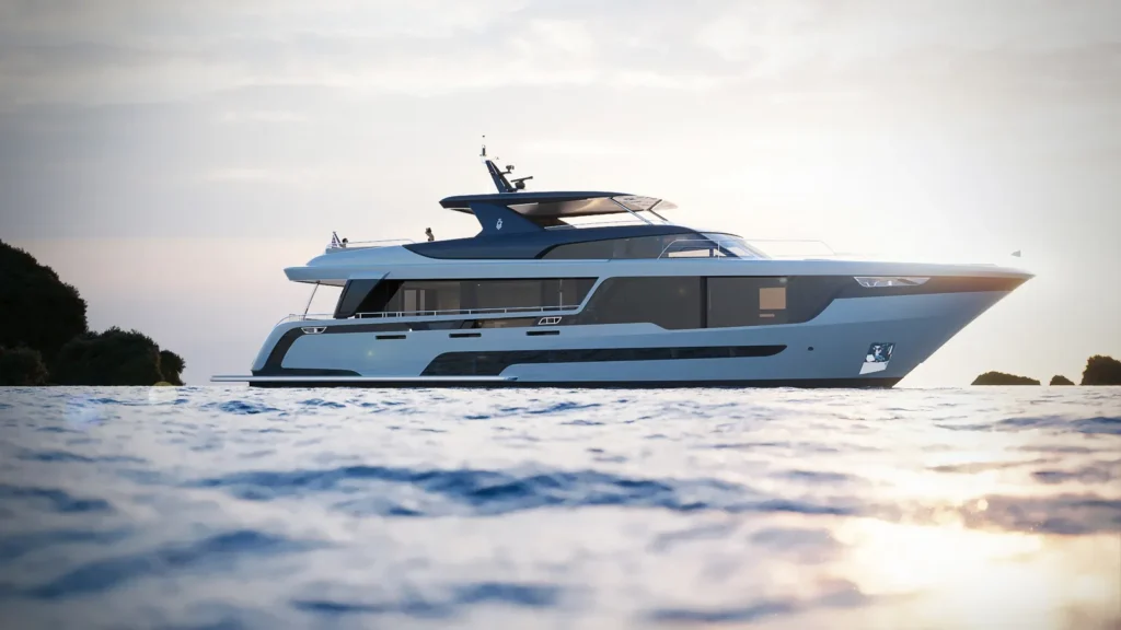 “Project Berlin”标志着这家位于瓦尔韦克的船厂再次与荷兰设计师吉多·德·格鲁携手合作。船厂方面强调,该艇不仅拥有极具动感的线条设计,更在空间感和舒适度上媲美更大尺寸的游艇,同时其各项参数仍巧妙地控制在24米以下的法规监管阈值之内。