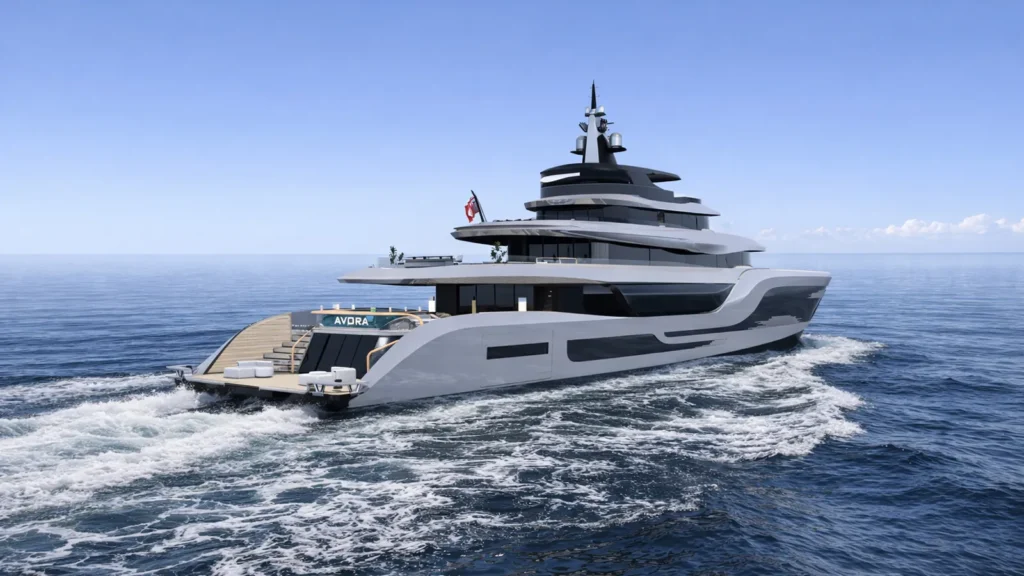 基于此,Avora展现出了独特的哑光碳色与黑曜石灰外观,其灵感源自行星岩石质感的表面,而船体线条则围绕太空中“轨道流体性”的概念进行勾勒。尖锐的后倾船首与充满动感的重叠甲板线条以及弯曲的玻璃窗 seamlessly 融为一体,工作室创始人阿尔佩伦·阿斯兰指出,这种设计“酷似海王星层层叠叠的大气结构”。