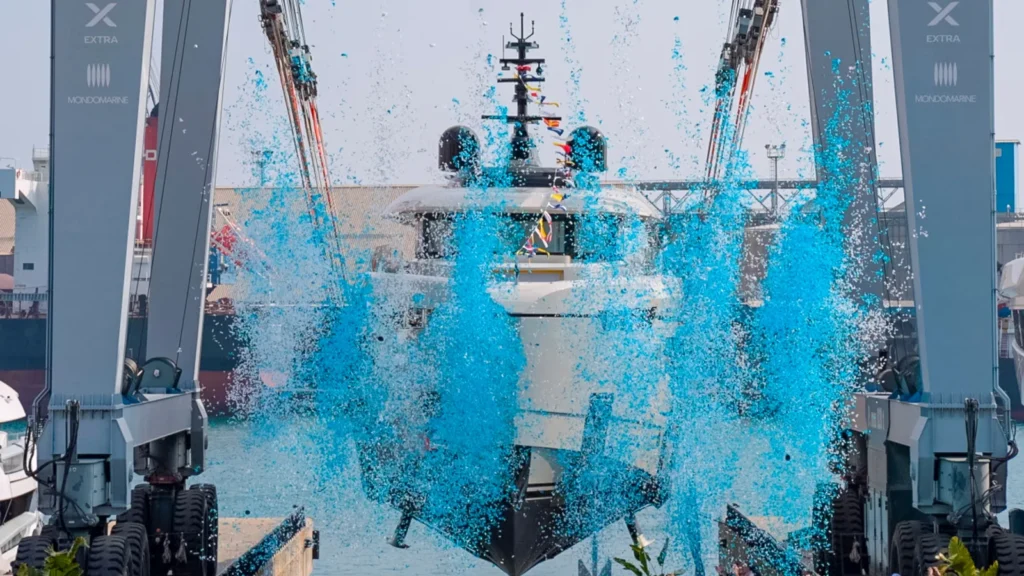 这艘全铝合结构的38米游艇上一次出现在公众视野中是在2024年,当时她的船体与上层建筑刚刚完成合拢。此次下水标志着项目迈入了关键阶段,该船早在2023年便已确认售出,交易过程中Mele Yacht公司的Assia和Salvatore Mele发挥了重要的桥梁作用,成功将买家引荐给船厂。