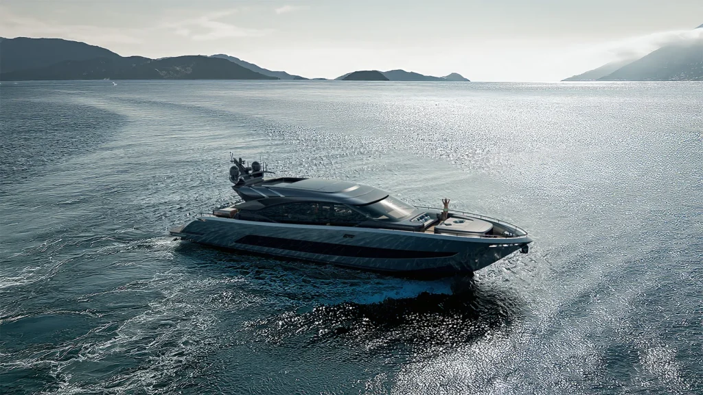 这艘游艇拥有极具空气动力学特性的外观轮廓,视觉重心显著降低,强化了其“性能导向”的身姿。上层建筑集成了可开启式硬顶,让主甲板空间变得明亮且通透,并配备了完善的娱乐设施,确保宾客在享受速度的同时也能拥有极佳的社交环境。