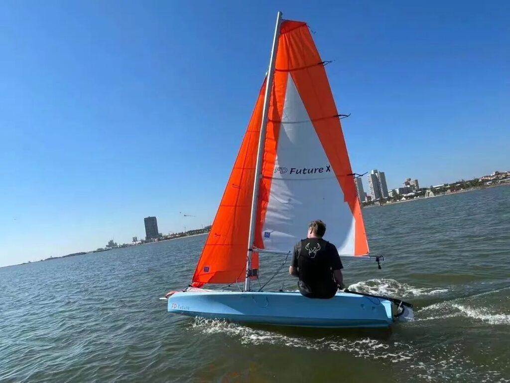 FD系列帆船以其操控灵活、性能稳定著称,特别适合初学者和专业选手使用。FD Future青少年帆船的设计制造汇聚了国际顶尖智慧。中国青少年帆船俱乐部运营团队基于丰富的教学经验提出核心需求,确保船只完美契合国内培训实际;瑞士VMG设计团队注入专业航海基因,赋予其卓越的航行性能;而FD荷岚飞人严格按照欧盟标准完成制造,保障了产品的国际品质。