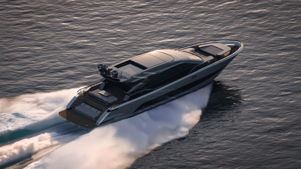 从外观上看,该游艇采用了极具空气动力学原理的流线型设计,不仅视觉上压低了整船的重心与线条,更强化了其“以性能为绝对主导”的运动姿态。上层建筑巧妙地融入了可开启式天窗设计,使得主甲板区域格外宽敞明亮,且配备了极其完善的休闲娱乐设施。