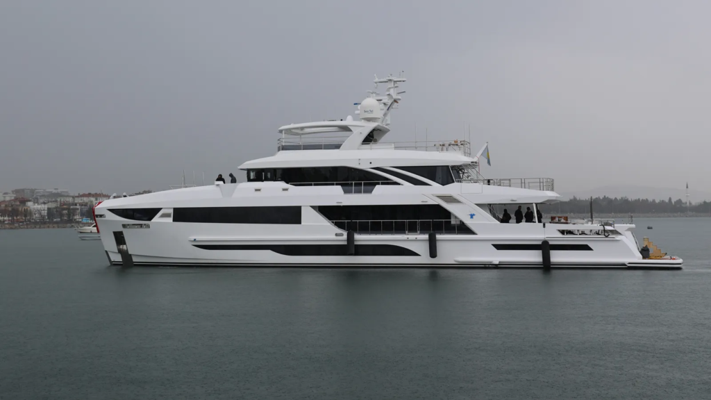 这艘超级游艇最初由土耳其Bering Yachts船厂于2024年建造下水,目前即将交付。